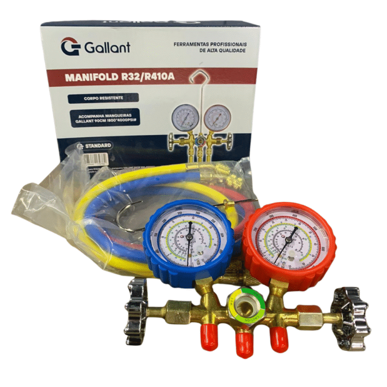 O Manifold Gallant R32/R410A com Mangueira de 90 cm foi projetado para oferecer segurança, precisão e praticidade em serviços de refrigeração e ar-condicionado. Com capacidade para suportar pressões de 800 a 4000 PSI, é ideal para o manuseio de sistemas de alta performance, garantindo confiabilidade no trabalho do técnico instalador.